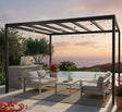 Stylish deep-seating sofa made from weatherproof Seaboard® poly lumber with rust-proof aluminum supports. Features plush, fade-resistant Sunbrella cushions for long-lasting comfort and modern outdoor elegance.
