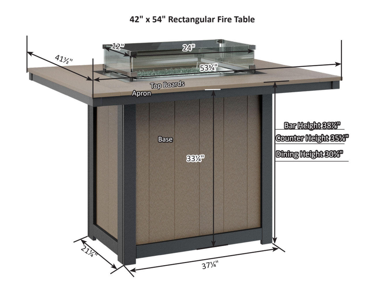 Berlin Gardens Donoma Standard Top 42" x 54" Rectangular Fire Table Counter